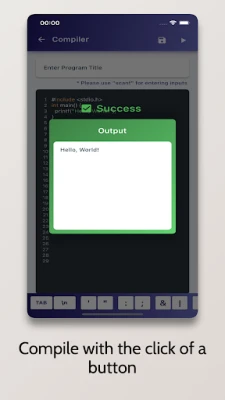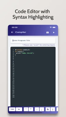 C Compiler is an Advanced IDE enabling you to compile C Programs on your Mobile Phone for Free. It comes with a code editor with in-built syntax highlighting capabilities.