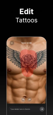 * Realistic Tattoo Previews: Visualize your tattoo on different body parts.