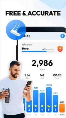 This pedometer uses the built-in sensor to count your steps. No GPS tracking, so it can greatly save battery. It also tracks your burned calories, walking distance and time, etc. All this information will be clearly displayed in graphs.